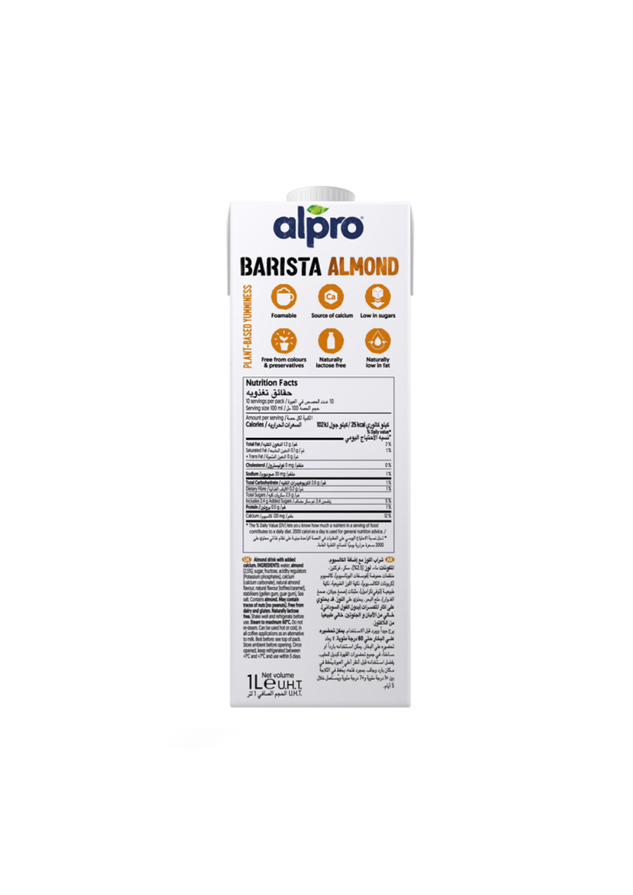 HomeالمتجرCOFFEEMilkAlpro Barista Almond 1LAlpro Barista Almond 1LSAR 16.50 Alpro Barista Almond 1L quantity Add to cart Buy Now Add to WishlistRemove from Wishlist Add to Wishlist Category: Milk Product ID: 37356 Description Reviews (0) Description Alpro Barista Almond Milk is perfect for coffee and hot beverages. It creates smooth, creamy froth with a rich almond flavor. Vegan-friendly and lactose-free, it provides a professional coffee experience at home or in your café. Related products Add to WishlistRemove from Wishlist Add to Wishlist ألپرو باريستا حليب الشوفان – ١ لتر SAR 16.50 Add to cart Add to WishlistRemove from Wishlist Add to Wishlist ألپرو باريستا حليب الصويا – ١ لتر SAR 16.50 Add to cart Add to WishlistRemove from Wishlist Add to Wishlist Alpro Barista Soya Milk 1L SAR 16.50 Add to cart Add to WishlistRemove from Wishlist Add to Wishlist Alpro Barista Oat Milk 1L SAR 16.50 Add to cart