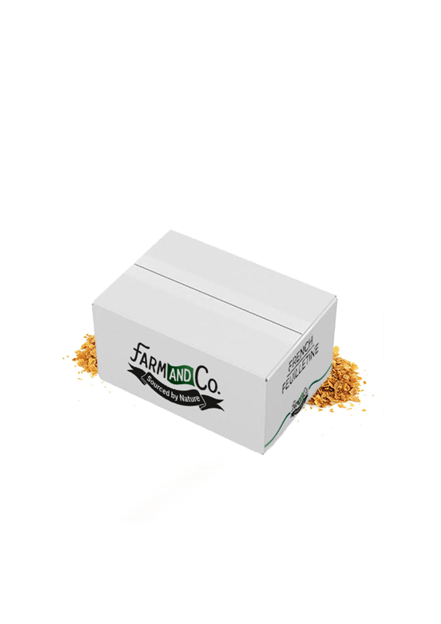 HomeالمتجرSAUCEFilling SpreadFrench Feuilletine FlakesFrench Feuilletine FlakesSAR 60.00 French Feuilletine Flakes quantity Add to cart Buy Now Add to WishlistRemove from Wishlist Add to Wishlist Categories: Filling Spread, POWDERS Product ID: 37496 Description Reviews (0) Description French Feuilletine Flakes Size : 2.5 Kg Related products Add to WishlistRemove from Wishlist Add to Wishlist Cream Elite Custard SAR 198.00 Add to cart Add to WishlistRemove from Wishlist Add to Wishlist Karak Premix Tea SAR 47.50 Add to cart Add to WishlistRemove from Wishlist Add to Wishlist Biscuit Crumbs Choco (0-2mm) SAR 28.00 Add to cart Add to WishlistRemove from Wishlist Add to Wishlist Vanilla Muffin cake mix SAR 209.00 Add to cart